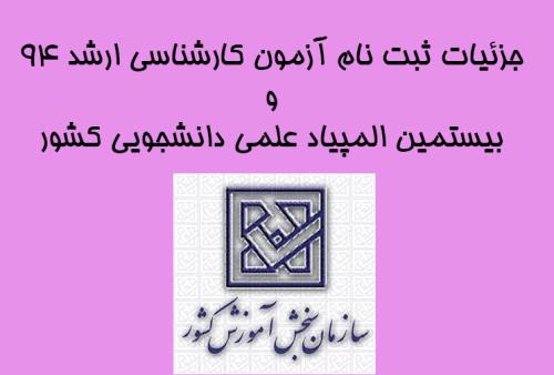 جزئیات ثبت نام آزمون کارشناسی ارشد 94 و بیستمین المپیاد علمی دانشجویی کشور