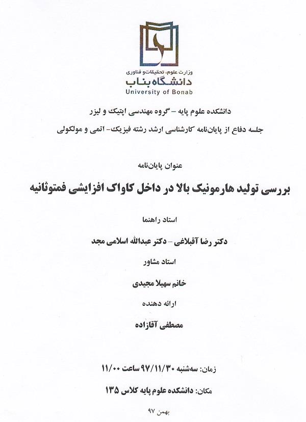اساتید راهنما: دکتر رضا آقبلاغی - دکتر عبدالله اسلامی مجد